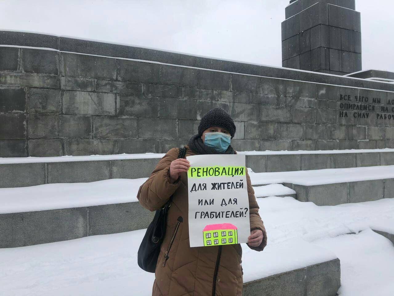 «Пикет прошел спокойно. Подходил капитан полиции, сфотографировал плакат, записал мои данные. Это был явно не случайно проходящий полицейский. Знали заранее, я писала в оппозиционных чатах. До конца пикета рядышком дежурили два „эшника“ (сотрудники отдела по противодействию экстремизму — прим. ред.) в штатском. Но все было по закону, попыток задержать не предпринимали. Прохожие интересовались плакатом, подходили, задавали вопросы. Явный сторонник реновации обнаружился только один, остальные, скорее, встревожены. Я очень надеюсь, что нам всем удастся защитить свое право на достойное жилье», — сказала Саломатова.