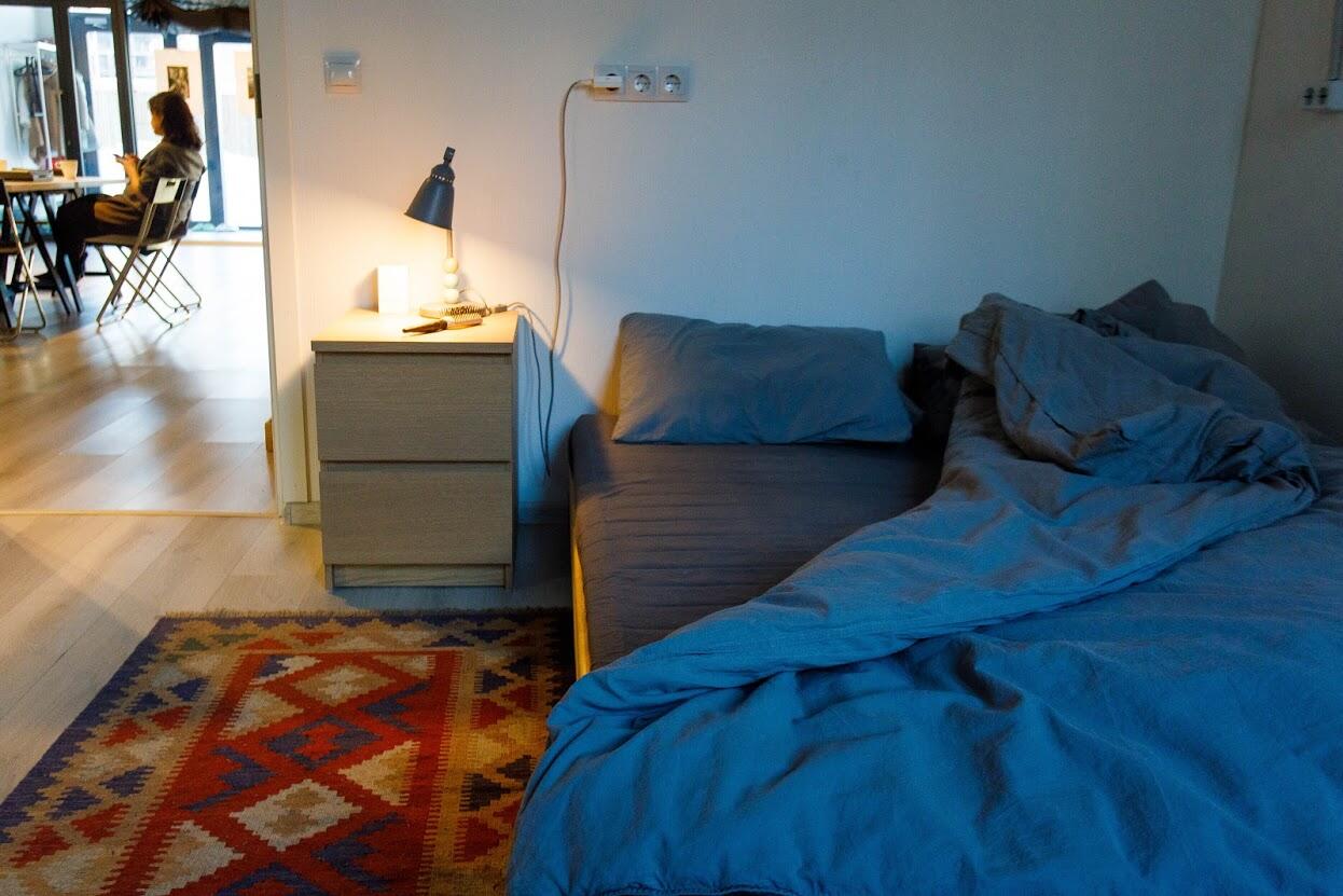 Отдыхает художница в отдельной спальне. Это приватное пространство, в которое нет доступа гостям.