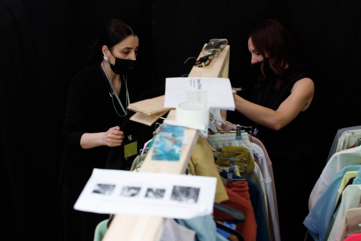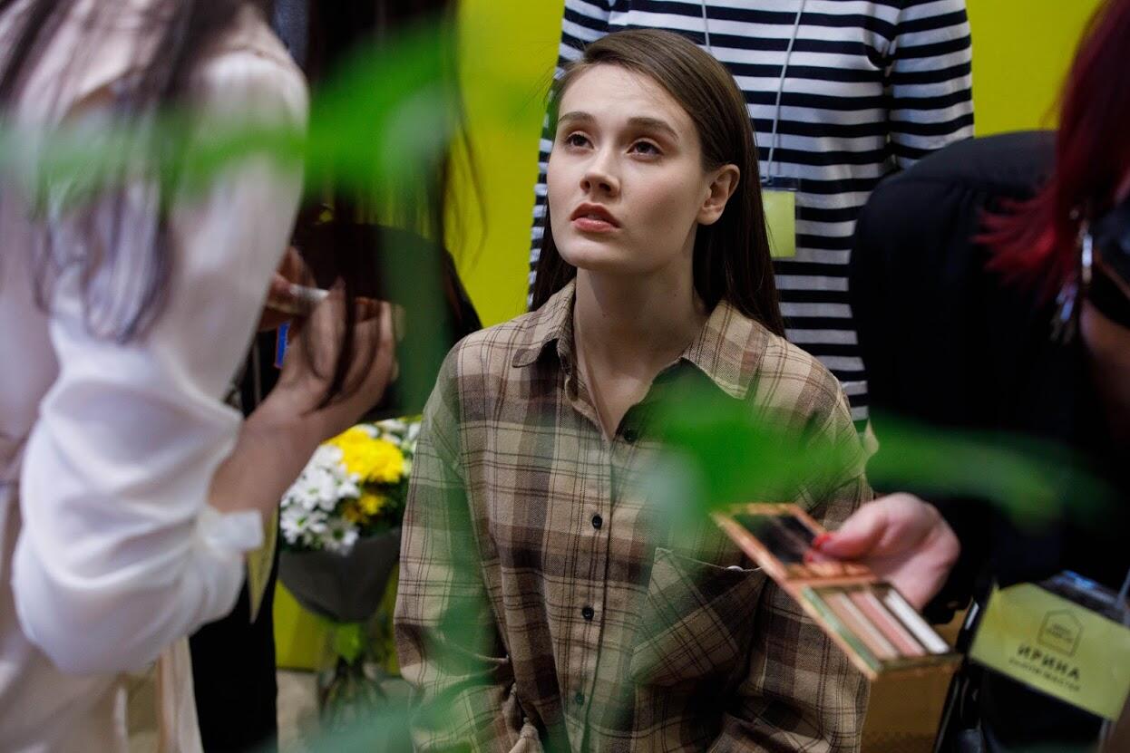 Тем временем за сценой к выходу на подиум готовятся модели. С ними работают визажисты и стилисты.