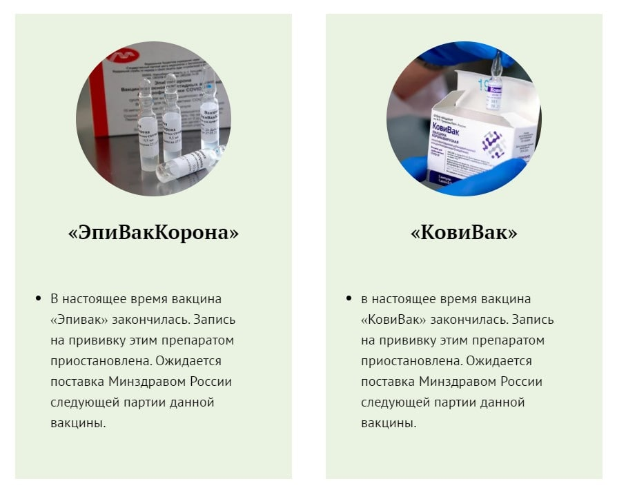 Ранее в московских прививочных пунктах закончилась вакцина «КовиВак», разработанная центром имени Чумакова. Она поступила в столицу в начале июня в ограниченном количестве (около 3 тысяч доз), поэтому привиться ей можно было только в пяти поликлиниках.