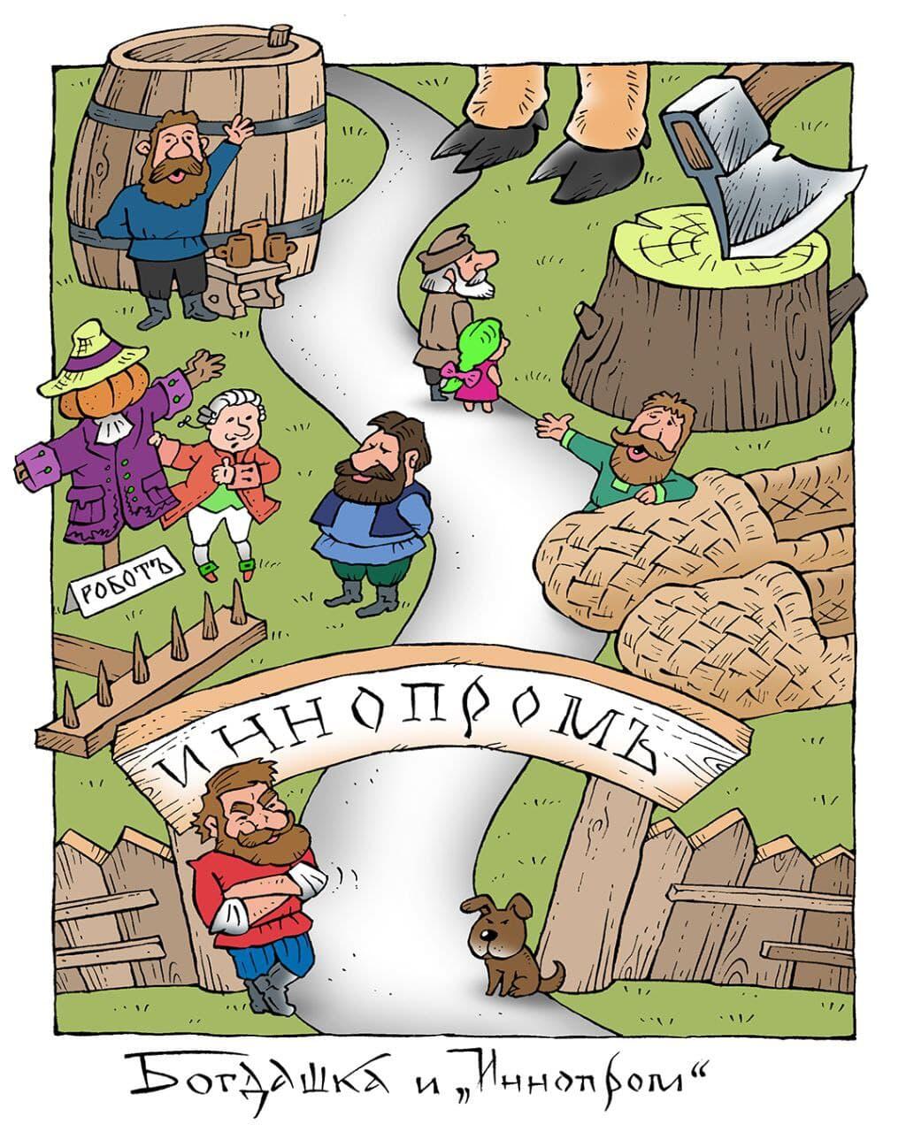 Правда, со временем выяснилось, что роботы оказались совсем даже не передовыми новинками, а древними и бывшими в употреблении, царя каждый раз приходится ждать на жаре три часа, а кормят в избах скверно и только за большие деньги. Тогда китайскую водку селяне выпили, роботов перебили и утопили в болоте, избы сожгли, а губернатора прогнали.