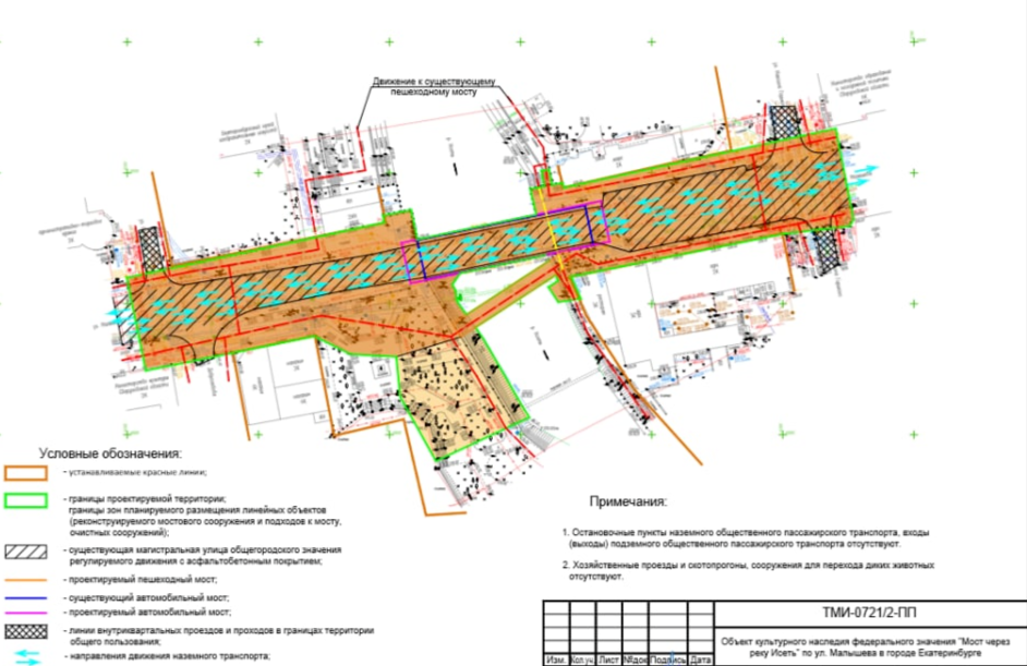 Однако администрация Екатеринбурга отклонила практически все предложения горожан и выступила за изначальный проект, который предлагает убрать с моста оба тротуара. Согласно проекту с северной стороны пешеходам придется пересекать реку Исеть по железному мосту «любви» возле Музея ИЗО, а с южной построят диагональный мост — от памятника Малышеву к ресторану «Итальянцы» на одном уровне с улицей. На перекрестке Малышева — Добролюбова хотят сделать дополнительные пешеходные переходы.