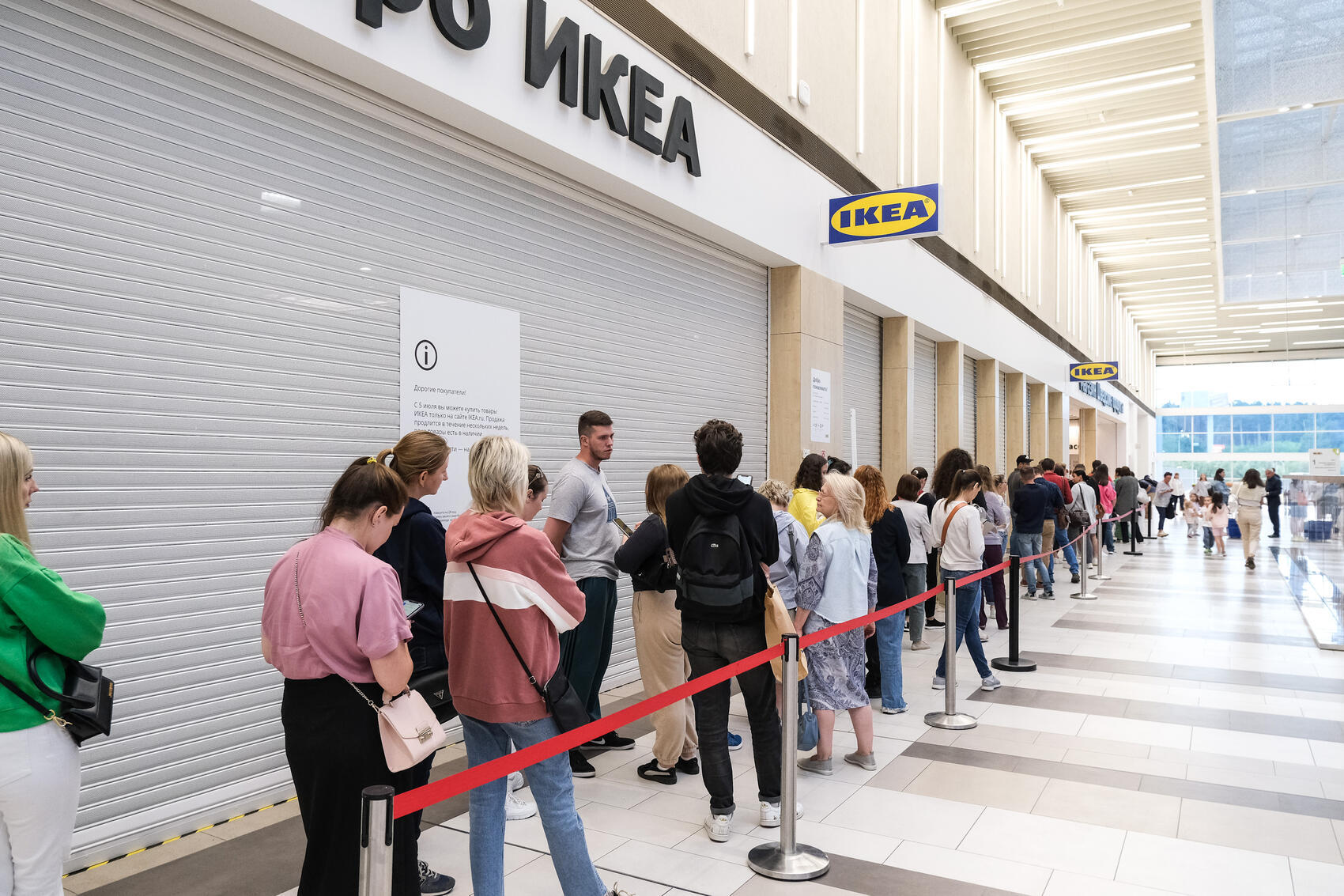 В августе в екатеринбургском торговом центре «Мега» ненадолго открыли магазин шведских продуктов от IKEA. В нем можно было купить знаменитые фрикадельки, варенье, соусы, шоколад и посуду — сковородки, кастрюли, стаканы и прочую кухонную утварь. Из-за ограничений на вход возле магазина скопилась длинная очередь.
