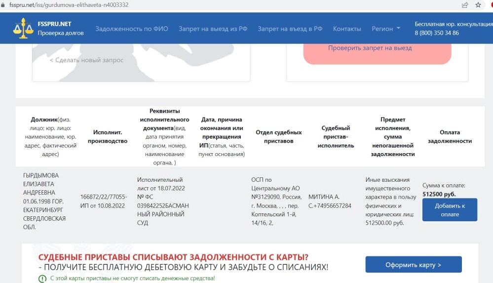 Дополнение от 08.09.2022 18:00. Певица Лиза Монеточка сообщила в своем телеграм-канале, что не знает о розыске, потому что ей не приходило оповещение от судебных приставов. Она выплатила долг.