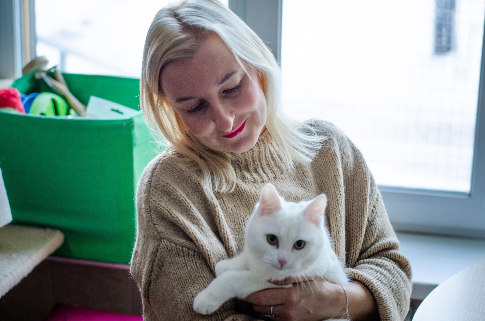 Фото: Евгения Кобеева / It’s My City— Прошлая моя кошка жила со мной 16 лет, но умерла от рака. Только спустя четыре года я решила взять новое животное из приюта, чтобы подарить кому-то счастье. Мы с бывшим мужем нашли шикарного пушистого кота, но в приюте нам объяснили, что он очень вредный, да и размер у него огромный, совсем не для нашей квартиры. Предложили взять Капитолину. На фоне этого кота она выглядела настоящей чмоней — маленькой и побритой.