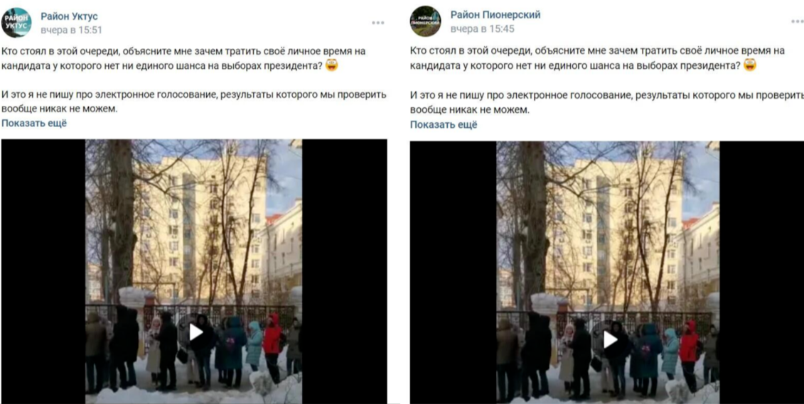 Фото: читатель It's My CityТогда же в районных группах Екатеринбурга во «ВКонтакте» начали публиковать посты с одинаковым текстом о том, что тратить свое время на кандидата, который все равно не выиграет в выборах президента, бессмысленно.
