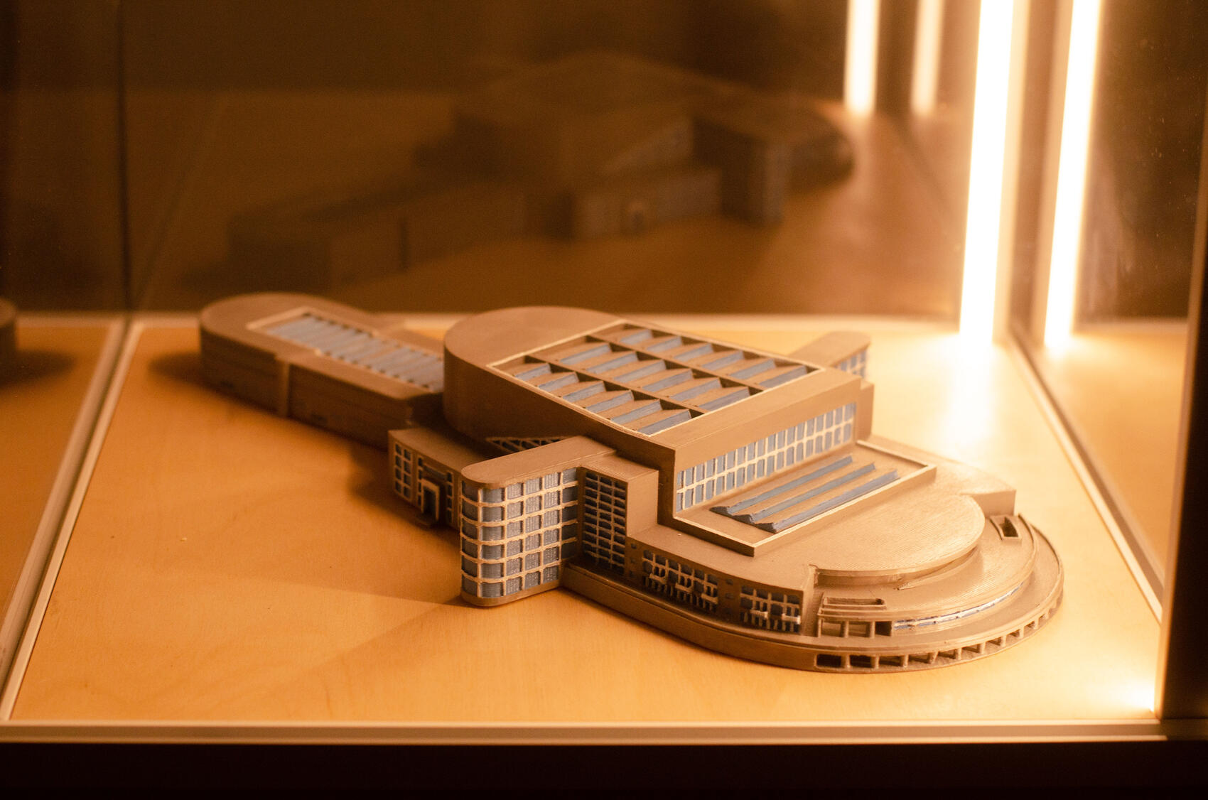 Строительство возобновили в 1940-е годы с сильными изменениями проекта и закончили только к 1967 году. Сейчас горожане называют здание «пентагоном» из-за его массивности и строгой планировки, схожей с настоящим Пентагоном, в нем работает «НПО Автоматики». Чтобы обойти все здание по контуру внутри и снаружи, нужно пройти более километра.