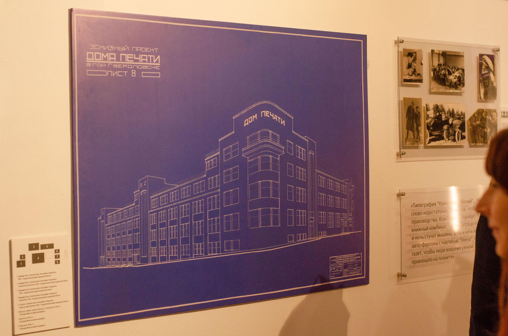 Сегодня проходя мимо Дома печати невозможно услышать звук типографских станков, из конторского здания не разносится мерный стрекот печатных машин, а возле гостиницы „Большой Урал“ не останавливаются кортежи с главами иностранных государств. Нет Советов, для которых строился Дом Советов, как и партсъездов, которые должны были проходить в Синтетическом театре. А грандиозные идеи застройки „нового центра областного значения“ обратились в призраки площади, ее несостоявшееся будущее», — заключают кураторы выставки.