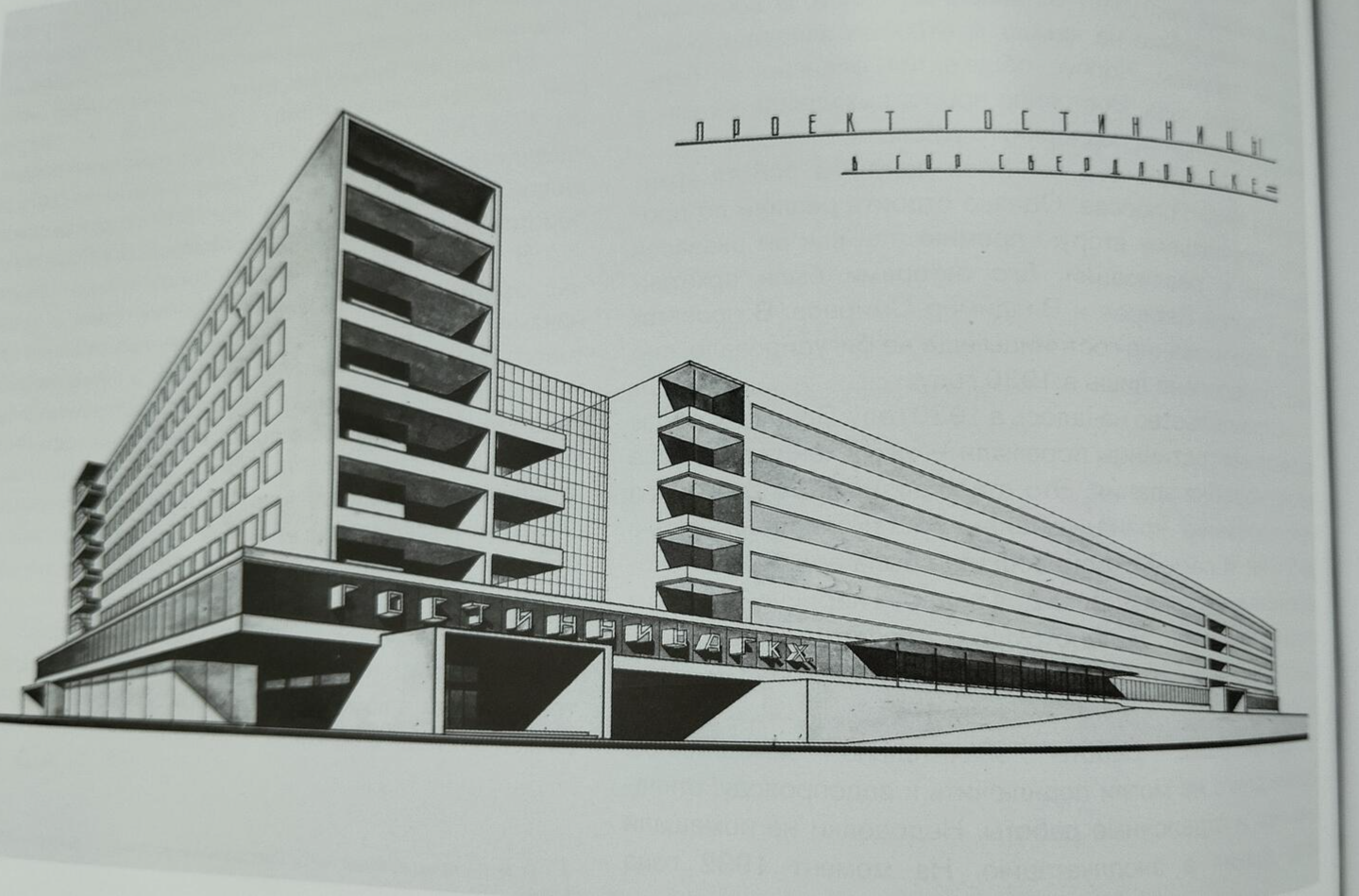Варианты экстерьера и интерьера Синтетического театраОдин из реализованных проектов на площади Парижской Коммуны — это Дом печати с типографией газеты «Уральский рабочий». Строить его начали в 1929–1930 годах. Изначально здание разработал архитектор Владимир Сигов. Судя по эскизам, его угловая часть должна была возвышаться над крыльями здания, а ленточного остекления не предполагалось.