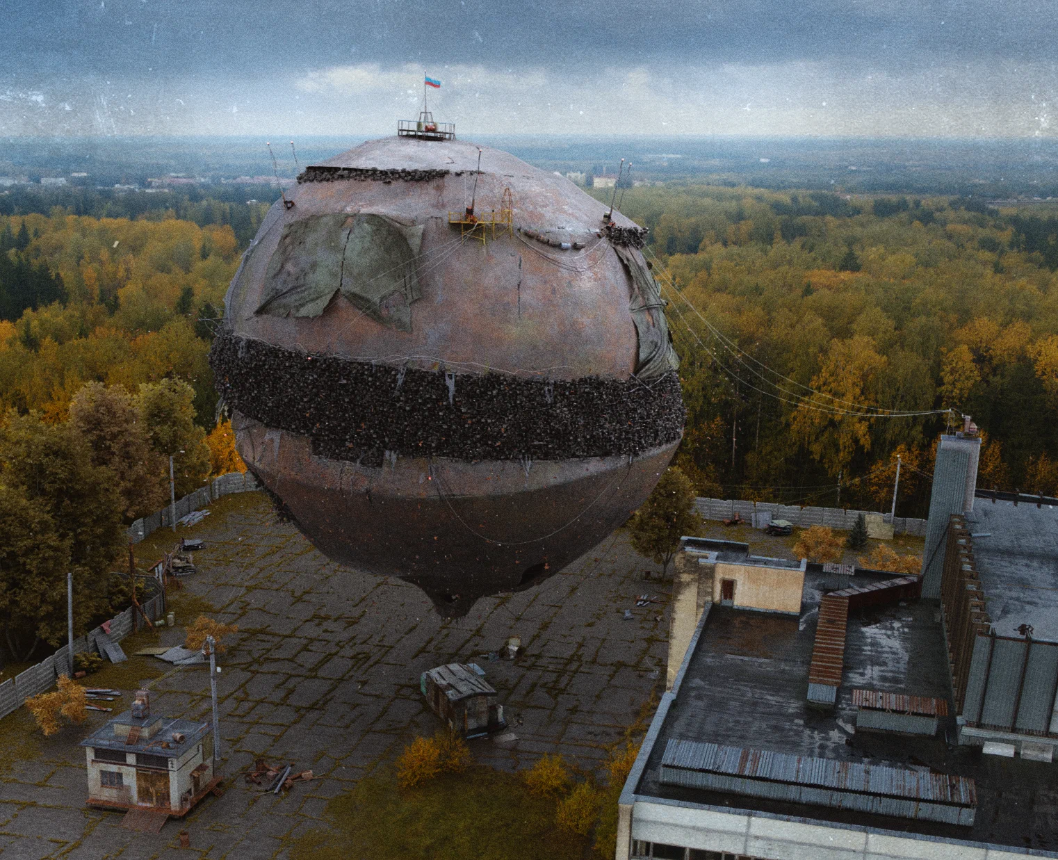 Герои разговаривают как люди, которых ты увидишь либо в депрессивном российском артхаусе, либо в продуктовом магазине в 12 часов ночи — косноязычно, сбивчиво, не стесняясь бранных слов. Над серой рутиной этих персонажей возвышаются памятники золотому шару. Каменные инопланетянин и человек тянутся к несбывшемуся светлому будущему, как «Рабочий и Колхозница». На парящих космических кораблях виден... российский флаг.