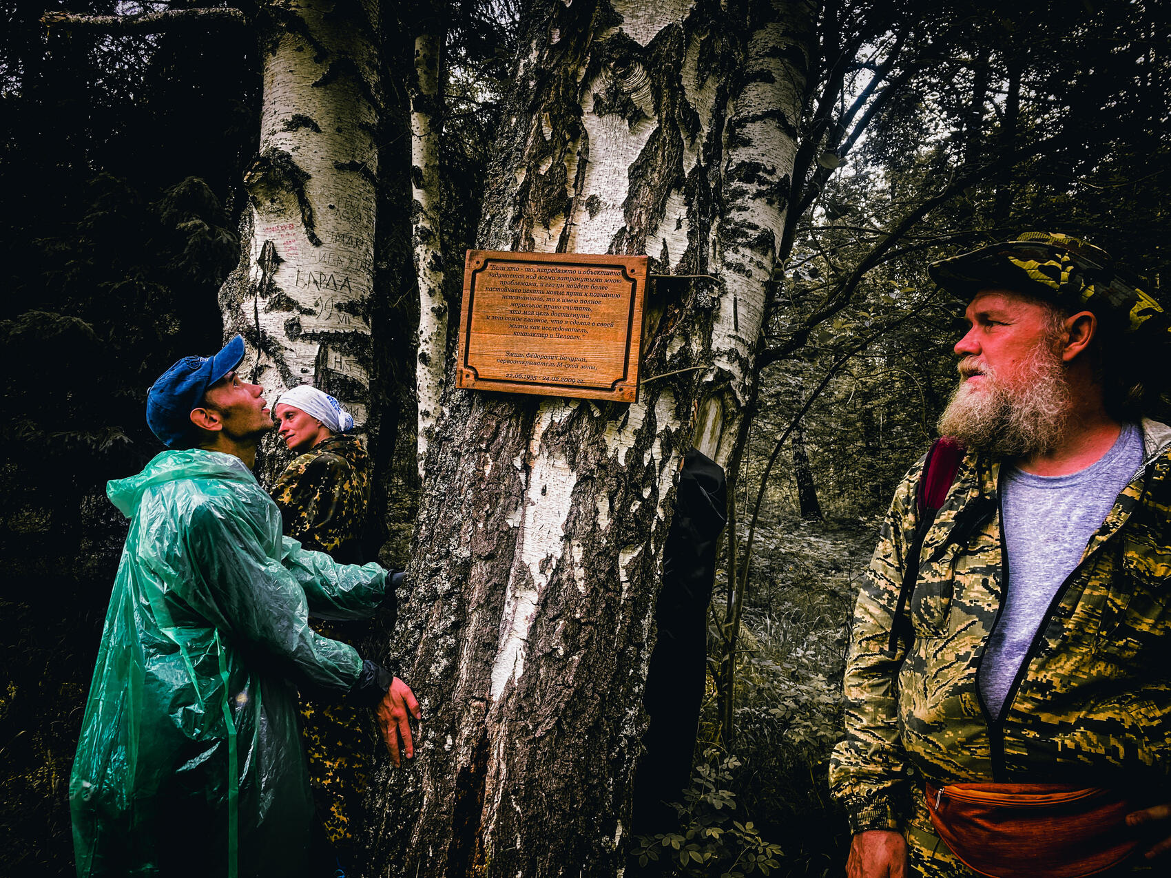На опушке стоят три «теплые березы», на одной из них табличка в память об Эмиле Бачурине. Температура этих деревьев всегда выше, чем у остальных. Почему так происходит — загадка, но по словам проводника, зимой вокруг них даже нет снега.