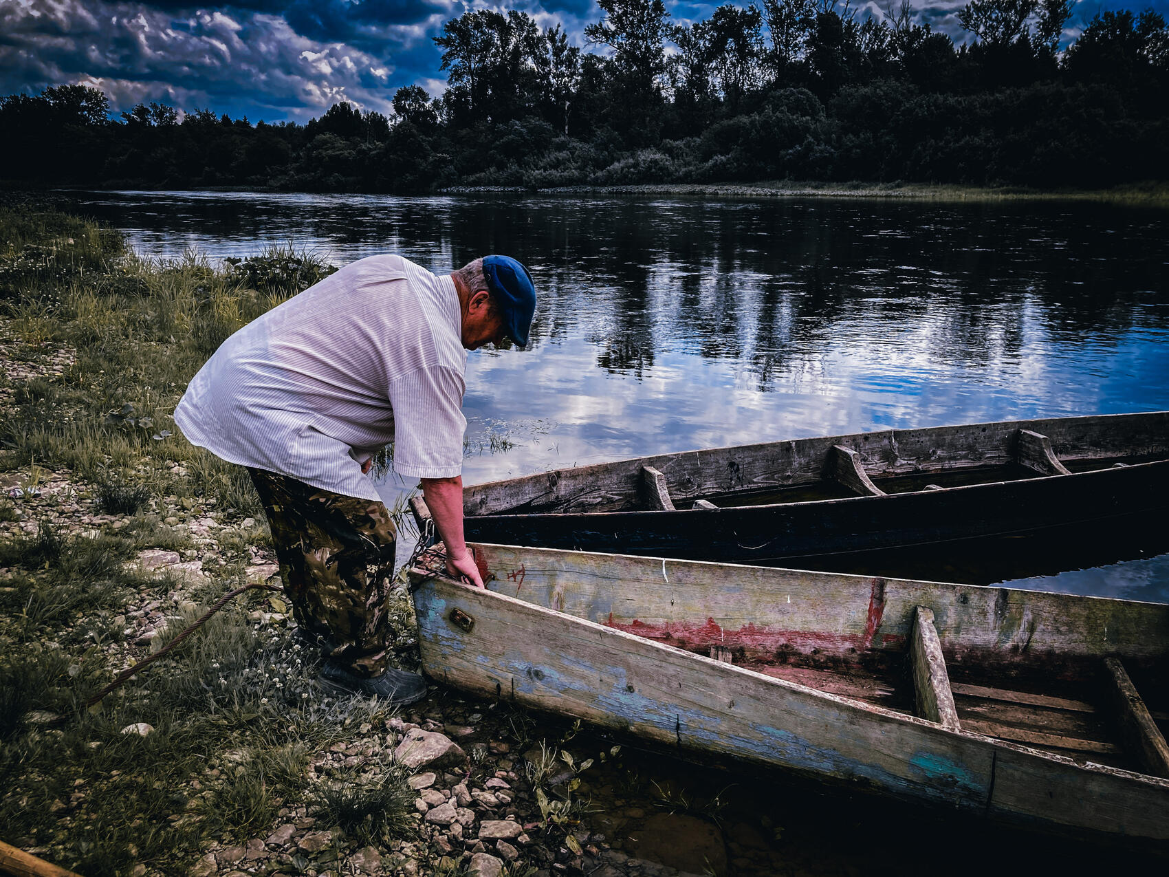 На деле все не так поэтично: через Сылву нас переправляет лодочник Паша. Он рассказывает, что всю жизнь живет в Молебке и не хочет уезжать, очень тут ему нравится. Только вокруг все знакомые либо разъезжаются, либо умирают. Спрашиваю: