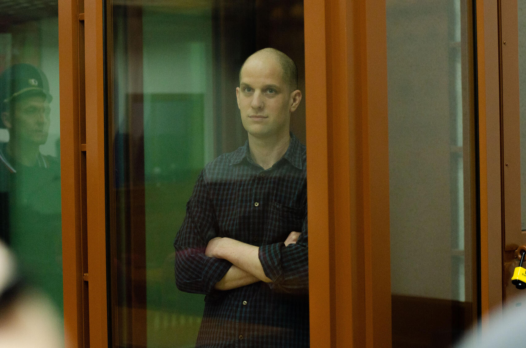 Журналист The Wall Street Journal Эван Гершкович на оглашении приговора по делу о шпионаже в Екатеринбурге. Его приговорили к 16 годам колонии, однако уже через две недели освободили в рамках масштабного обмена политзаключенными.