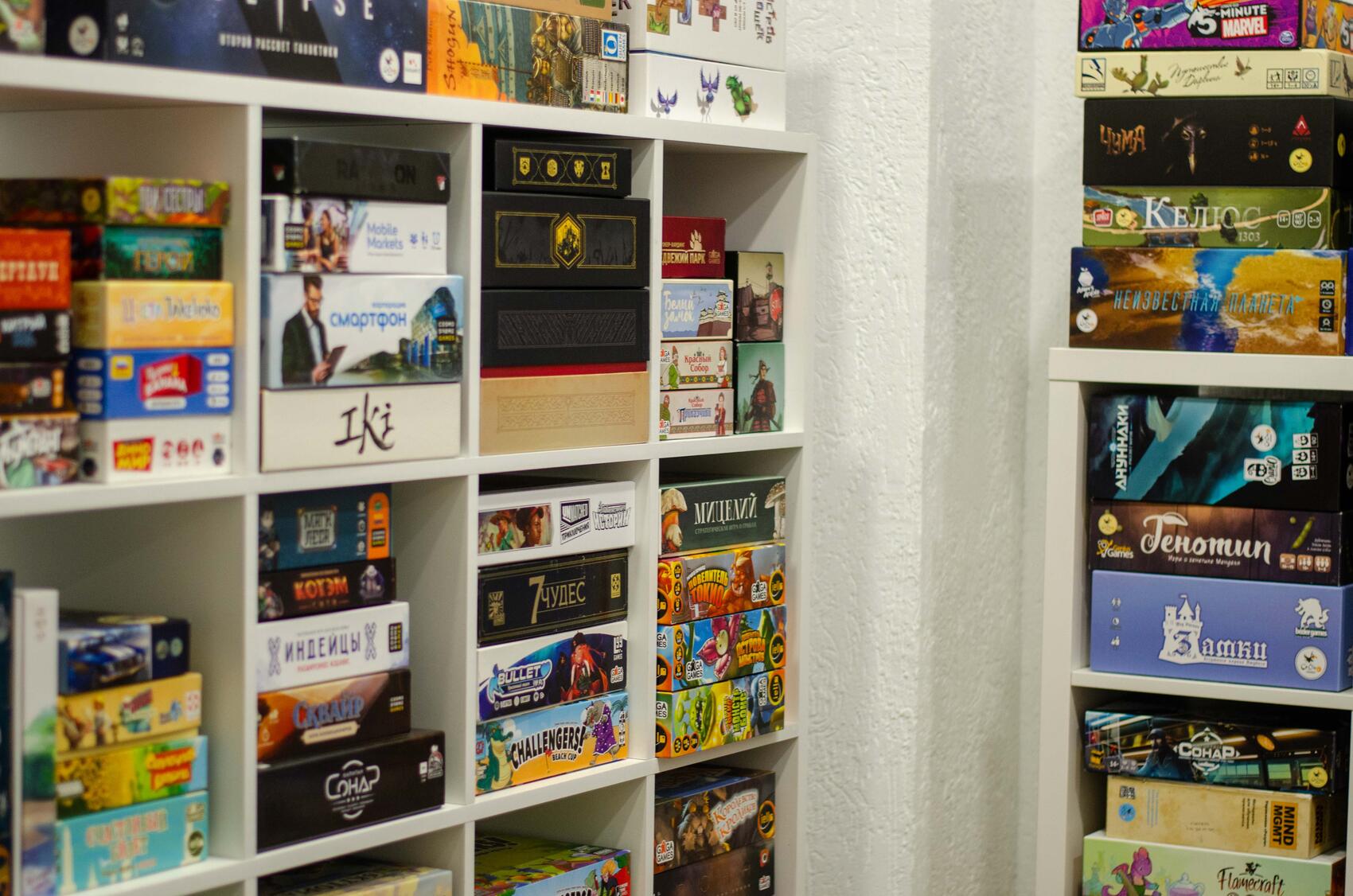 Всего в клубе около 600 коробок: что-то Мурсеевы принесли из личной коллекции, чем-то поделились другие игроки, многое присылают издательства. Владельцы клуба еще ни разу не отказывались от игр, но со временем, возможно, введут более строгий отбор. По их словам, в клубе больше места, чем дома, но все же оно ограничено, поэтому в конце концов нужно будет привозить то, во что будут чаще играть посетители.