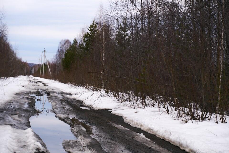 Выходя из электрички, замечаем одинокую остановку и тропинку, ведущую через лесополосу к электростанции и дальше к дачам. Пройти по ней сложно: местами она покрыта снегом, местами льдом, а кое-где встречаются глубокие лужи. По пути попадаются заброшенные дома и дачные участки с заколоченными окнами.