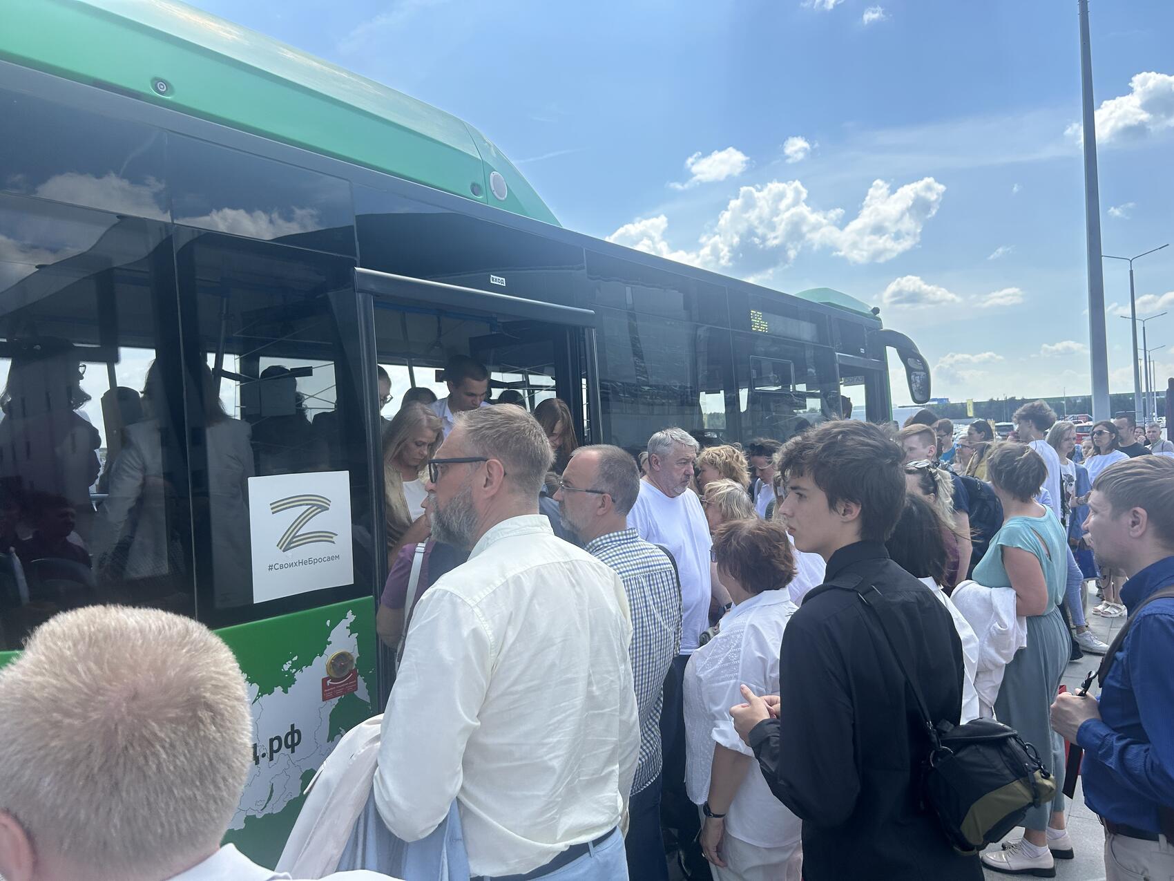Фото: телеграм-канал Дениса ПаслераКроме того, в день приезда Мишустина организаторы изменили схему движения бесплатных автобусов, которые ездили к станции метро «Ботаническая» и к отелям. Если в остальные дни они подъезжали прямо к «Экспо», то 8 июля весь транспорт останавливался за пределами комплекса, на автобусной остановке «Экспо-бульвар».