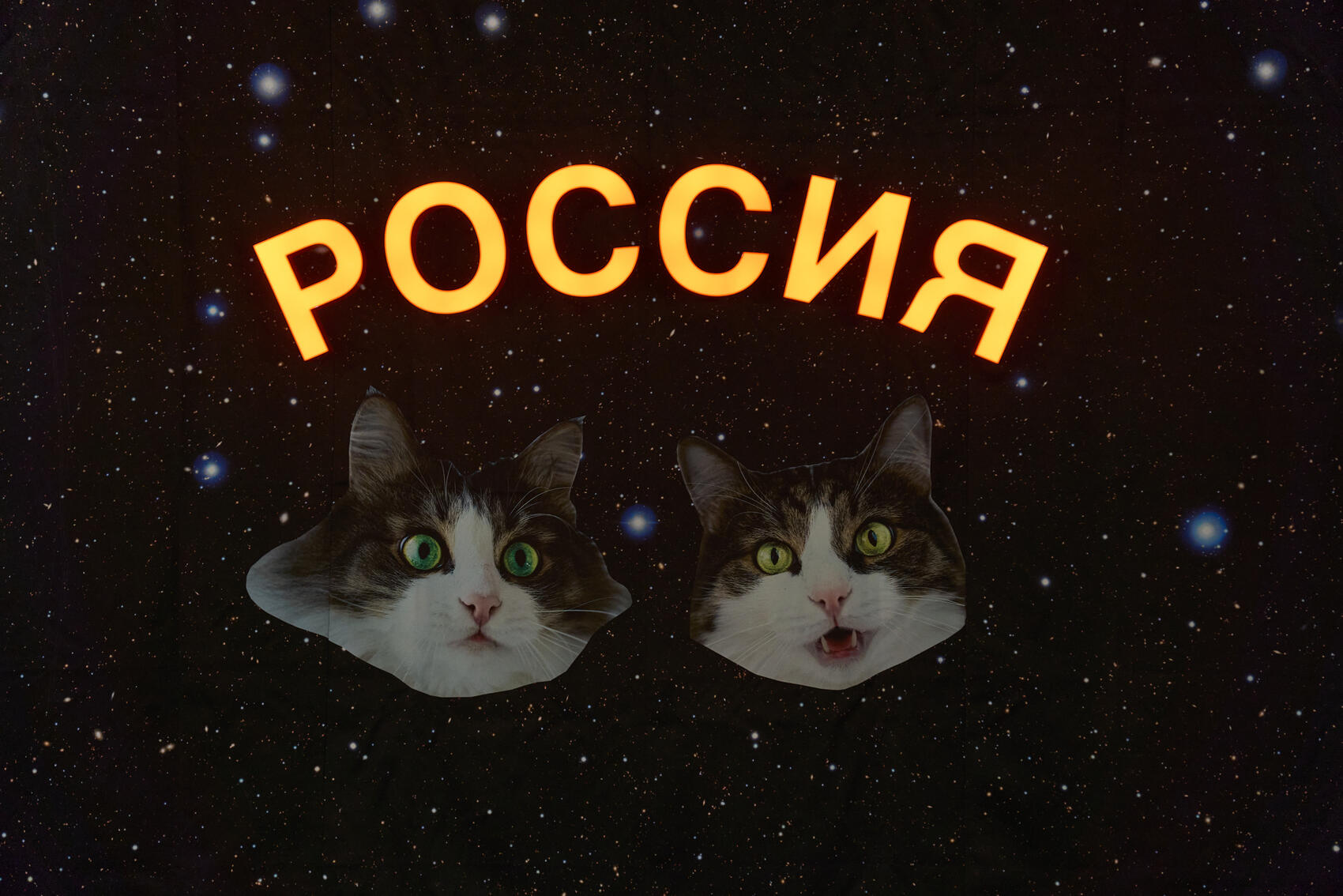 Одна из работ Глазун — картина с двумя котами и словом «Россия». Это настоящие коты автора, но в работе заложена отсылка к известному видео, где художник Дмитрий Пригов уговаривает своего кота Ваську сказать слово «Россия», и кот в конце концов убегает, так и не сказав ничего.