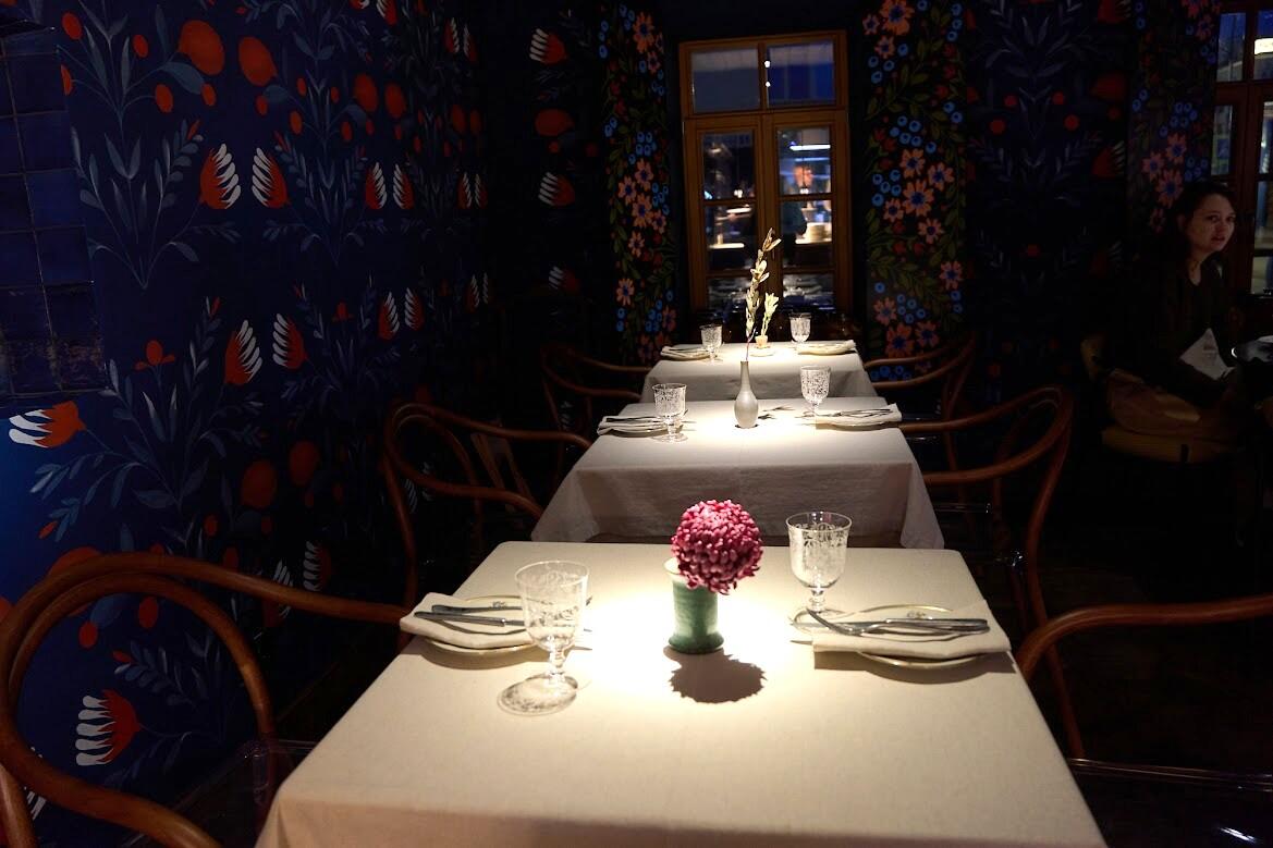 Бистро закрывалось на обновление интерьера и концепции в сентябре, и вот уже в начале ноября заработало в новом обличии. Теперь интерьер там выполнен в теплых оттенках с деревянными столешницами, перламутровыми колоннами и картинами с морскими волнами.