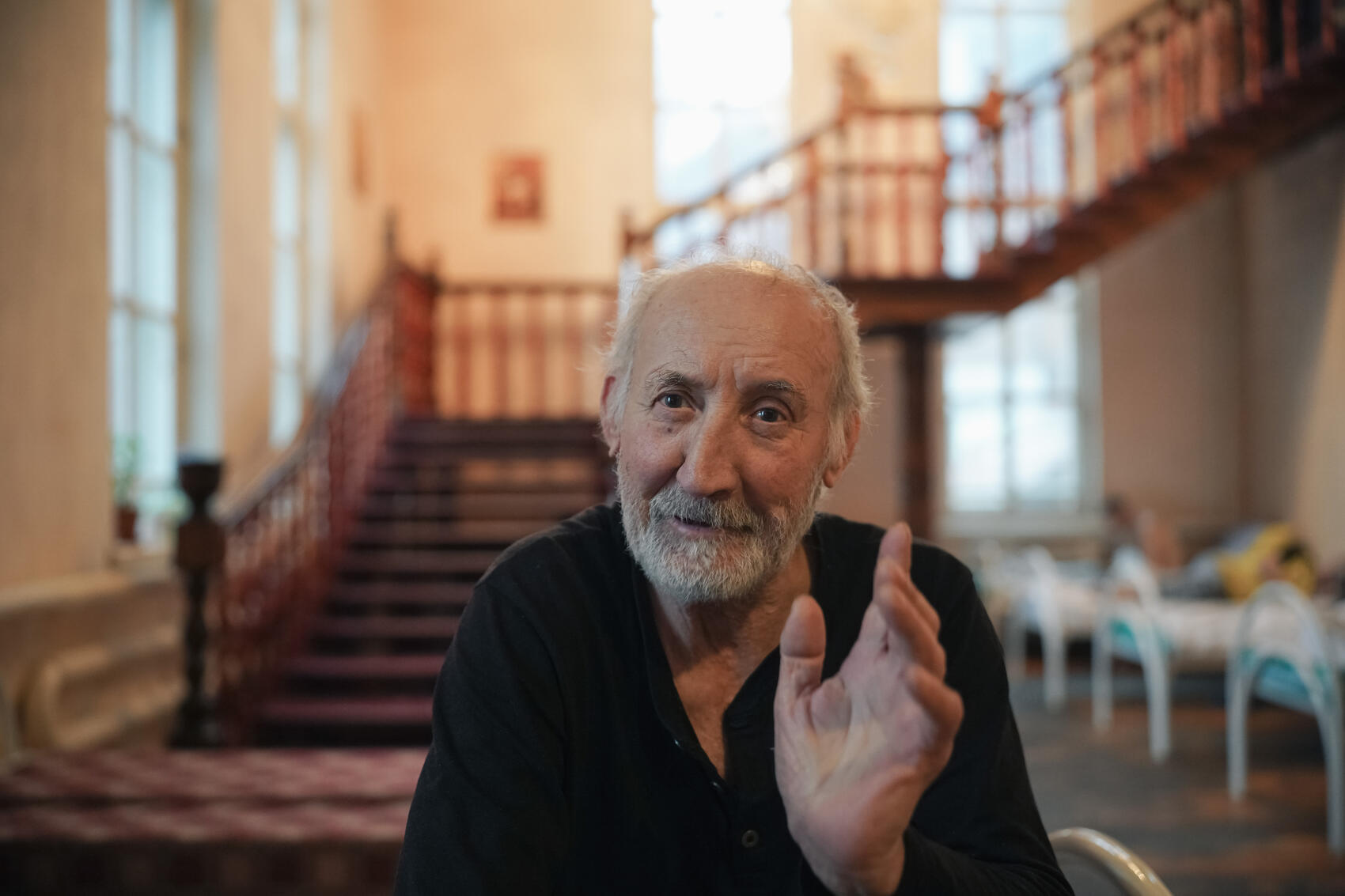 Далеко не у всех постояльцев есть опыт жизни на улице: кто-то попадает сюда почти сразу после того, как по какой-либо причине лишается дома. Так произошло, например, с незрячим 70-летним подопечным «Дари добро», который пробыл на улице всего один день. Мужчина называет себя Михаилом, хотя по паспорту он Малик. Он приехал из Казахстана в Россию в 2000-х, тогда и потерял документы. Сначала мужчина работал на железной дороге, а после переезда стал разнорабочим, часто оставался жить там, где и работал.